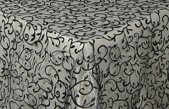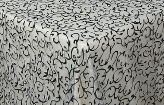 Tablecloth Black Scroll Organza WB 110" Square