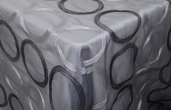 Tablecloth Black and Silver Circle Organza 110" Square
