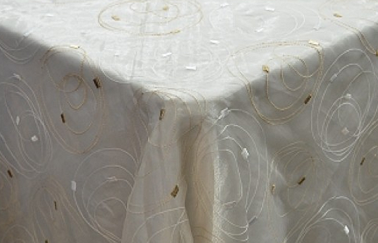 Tablecloth Gold and Beige Circles Organza 110" Square