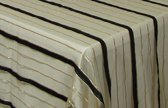 Tablecloth Organza Black and Gold Stripe 110" Square